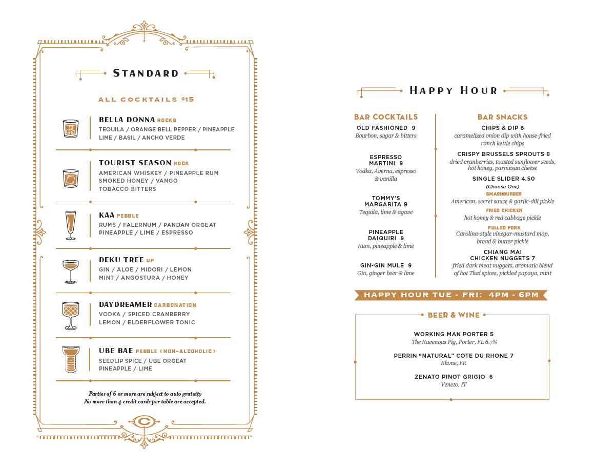 As Orlando’s oldest dedicated cocktail bar, our team artfully creates cocktails that leave you inspired. Our standard cocktails are our long-standing favorites you can enjoy again and again. The Revolving section changes each season as our team presents new recipes. We collectively decide on which will best represent the rich agriculture of our beautiful state, our creative thoughtfulness, and our customers.